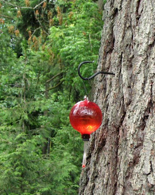 Last week I was out in the yard and a hummingbird darted past me, dipped, dove, hovered, checked out everything and was off—nothing here for him, I guess. So we dug out the hummingbird feeder, cleaned it up, made nectar and it waits for hummingbirds to find it, dripping gently in anticipation. (is there such a thing as a hummingbird feeder that doesn't drip? And I don't mean one of those plastic numbers...)